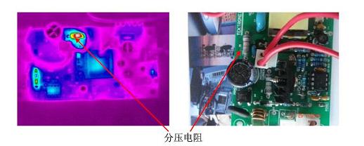 大的器件,所以必須加裝散熱片使其長期穩(wěn)定工作溫度不超過120℃;在拍攝熱圖時,散熱片是鋁合金材料經(jīng)過發(fā)黑處理,其表面雖然為黑色但其發(fā)射率還是較低,建議用油漆筆涂黑后進(jìn)行檢測,或在溫度穩(wěn)定一段時間后直接測量功率管的溫度。