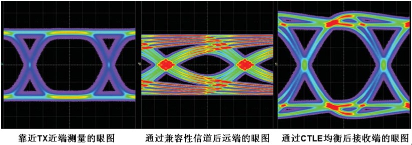 圖6:USB3.0的Transmitter測(cè)試在近端、遠(yuǎn)端和均衡后的眼圖對(duì)比