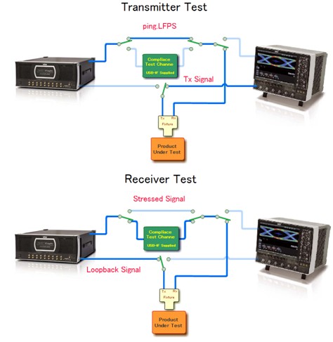 圖7:USB3.0的兩種誤碼測(cè)試和抖動(dòng)容限測(cè)試方法示意圖