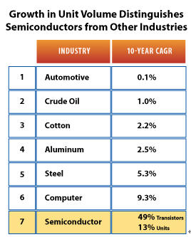 半導體業(yè)在數(shù)量上的增長與其它工業(yè)不同