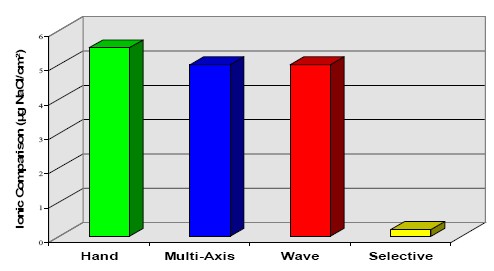 選擇焊只是針對所需要焊接的點(diǎn)進(jìn)行助焊劑的選擇性噴涂,線路板的清潔度因此大大提高,離子污染量大大降低。助焊劑中的NA+ 離子和CL-離子如果殘留在板子上,時間一長會與空氣中的水分子結(jié)合形成鹽從而腐蝕線路板和焊點(diǎn),最終造成焊點(diǎn)開路。因此,傳統(tǒng)的生產(chǎn)方式往往需要對焊接完的線路板進(jìn)行清潔。而選擇焊則從根本上解決了這一問題。