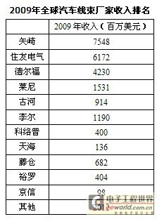 2009年全球汽車線束主要廠家市場(chǎng)占有率