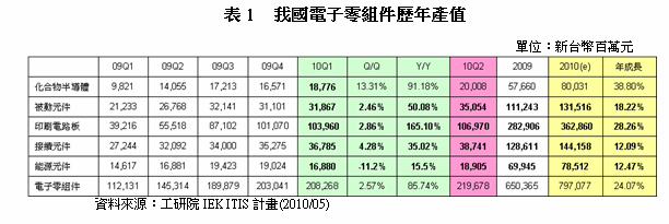- 預估2010年第二季我國電子零組件產(chǎn)值將達新臺幣2,197億元
