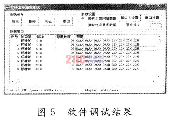 該CAN總線接口卡經(jīng)過(guò)實(shí)驗(yàn)驗(yàn)證,證明可以達(dá)到預(yù)期的要求,能夠良好地監(jiān)視總線上的數(shù)據(jù),而且結(jié)構(gòu)簡(jiǎn)單,有較大的利用價(jià)值。當(dāng)CAN總線系統(tǒng)數(shù)據(jù)流量較大時(shí),可以考慮使用USB接口和PC機(jī)進(jìn)行通信,這樣就能夠更好地解決速度匹配和應(yīng)用場(chǎng)合受限的問(wèn)題。