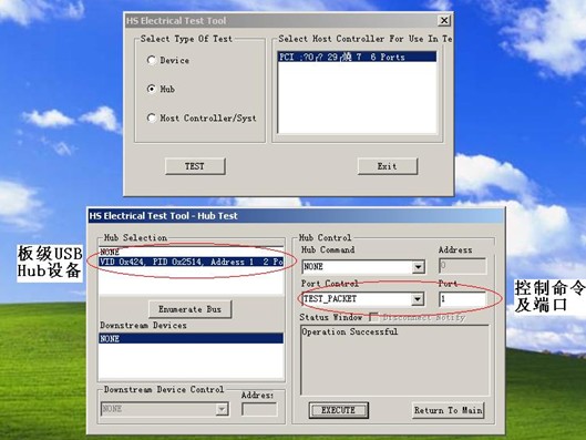(1)原來我們采用的方案只支持一個(gè)USB 主機(jī)接口,所以在片上只集成一個(gè)USB 主機(jī) Controller,測試命令也是基于主機(jī)控制器類型的。而我們的板級(jí)應(yīng)用是采用了一個(gè)USB Hub與主機(jī) Controller中繼來實(shí)現(xiàn)多端口應(yīng)用的擴(kuò)展,根本無法進(jìn)行Hub Down Stream Facing Port的測試。