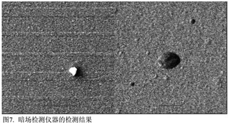 由于暗場檢測儀器的接受的更多的信號(hào)源都是有一定角度的,所以這種檢測設(shè)備會(huì)對晶圓的表面更敏感。所以在對通孔刻蝕后晶圓進(jìn)行檢測結(jié)果來看,能抓到更多的是表面的微粒以及通孔刻蝕過程中的聚合物殘留。所以暗場檢測儀器在對通孔刻蝕檢測結(jié)果不盡如人意,它只能對通孔刻蝕過程后芯片表面的殘留進(jìn)行有效的檢測,可是對于通孔刻蝕狀態(tài)沒法完全反映(如圖7所示)。