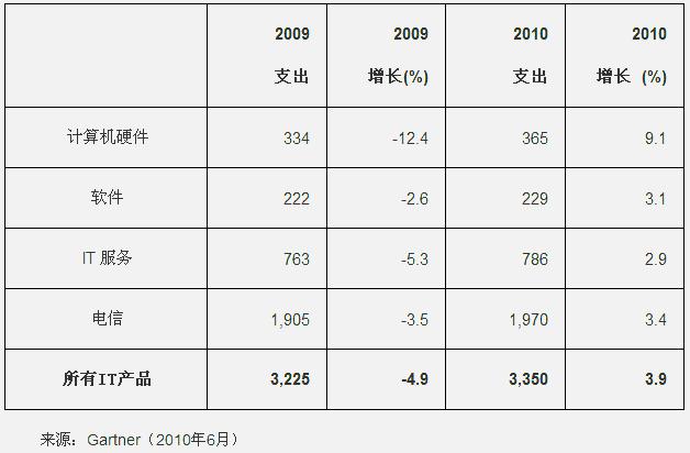 Gartner最新的研究報(bào)告指出,2010年全球IT支出預(yù)計(jì)將達(dá)3.35萬億美元,與2009年的3.22萬億美元的IT支出相比,增長為3.9%。不過,由于歐元對(duì)美元的貶值,Gartner已經(jīng)調(diào)低了今年第一季度所做的2010年全球IT支出預(yù)計(jì)將增長5.3%的預(yù)測。