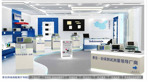 網上展廳是一種全新的以網絡為依托的互動營銷平臺,整合了文字、圖片、音頻、視頻和網絡等技術,同時3D立體畫面可讓受眾如身臨其境,可直觀地感受產品和品牌本身。泰克公司秉承“服務創(chuàng)新永無止境”的理念,希望借助這種新型的互動虛擬營銷平臺,結合遍布全國的零售實體店,通過“虛實”結合的全新營銷服務模式為中國工程師帶來顛覆式的絕佳采購體驗,并實現(xiàn)泰克品牌的展示。將現(xiàn)實中的公司產品展示廳搬到網站上并非泰克公司首創(chuàng),但在國際國內同行中無疑是第一個“吃螃蟹”的人。
