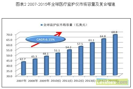- 2015年全球監(jiān)護儀市場需求復合增速不會低于6.15%