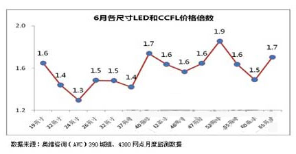 圖4 6月份各尺寸LED與CCFL價(jià)格倍數(shù)關(guān)系 [page]