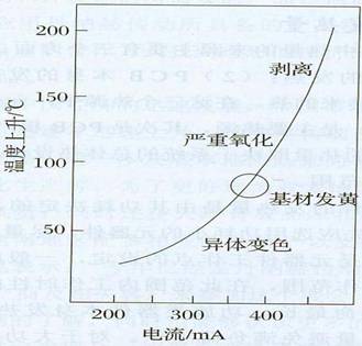 值得注意的是,當(dāng)導(dǎo)體圖形溫度上升到85℃左右時,絕緣材料自身開始發(fā)黃(圖1),電流繼續(xù)通過,最后銅圖形熔斷,特別是多層板內(nèi)層圖形,周圍都是傳熱性差的樹脂,散熱困難,因而溫度不可避免地上升,所以特別要注意導(dǎo)體圖形線寬的設(shè)計。實(shí)際上在進(jìn)行PCB布線設(shè)計時走線線寬主要依據(jù)其發(fā)熱量和散熱環(huán)境來確定的。銅導(dǎo)體的截面積決定了導(dǎo)線電阻(數(shù)字電路中線電阻引起的信號損耗可忽略不計),銅導(dǎo)體和絕緣基材的導(dǎo)熱率影響溫升,進(jìn)而決定載流量。圖2是普通FR-4覆銅箔板銅導(dǎo)體圖形線寬及截面積與允許電流之間的關(guān)系圖。從圖中可以看出:導(dǎo)體圖形截面積一定,當(dāng)其允許電流值為2A,溫度上升值低于10℃時,對于35Um銅箔,其線寬應(yīng)設(shè)計為2mm:對于70um銅箔,其線寬應(yīng)設(shè)計為lmm。由此得出:當(dāng)導(dǎo)體的截面積、允許電流和溫度上升值一定時,可通過增加銅箔厚度或加大線寬值兩個方面來滿足走線的散熱要求。