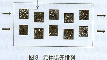 交錯分散排列。在布板設(shè)計進(jìn)行元件布局時,應(yīng)將發(fā)熱元器件與一般器件及溫度敏感器件區(qū)分開,發(fā)熱器件周圍應(yīng)留有足夠的散熱氣體流動通道,發(fā)熱元件應(yīng)錯開分散排列,如圖3所示。這與通常布局時的整齊劃一排列恰好相反,有利于改善散熱效果。[page]