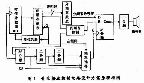 音樂播放控制電路設(shè)計(jì)方案原理框圖如圖1所示。