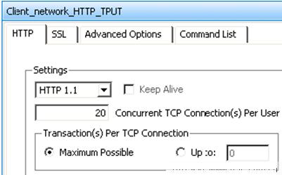 在進(jìn)行吞吐量基線測試中,一般以HTTP作為應(yīng)用層協(xié)議,為了得到最理想的測試效果,通過會選擇HTTP1.1,每個TCP連接處理盡量多的HTTP事務(wù)(transacTIon),并且將HTTP載荷設(shè)置較大。圖2是使用IxLoad設(shè)置的例子。