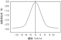 AMR單體是用鎳和鐵等制成的強磁性金屬合金。一般采用硅(Si)制成,當遇到施加的電流方向垂直的磁場時,阻抗值發(fā)生變化。這個現(xiàn)象就稱為磁阻效應,特性如圖1所示。它以0(零)H為軸,正負兩側(cè)對稱的特性,因此是不區(qū)別磁鐵的N極和S極的兩極檢測。