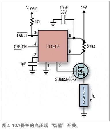 自從功率MOSFET器件推出以來(lái),設(shè)計(jì)師們一直將它們視作繼電器的潛在替代產(chǎn)品?,F(xiàn)代N-MOSFET開(kāi)關(guān)的導(dǎo)通電阻值在一位數(shù)毫歐姆范圍內(nèi),允許使用沒(méi)有笨拙散熱結(jié)構(gòu)的標(biāo)準(zhǔn)表面貼裝技術(shù)。目前已經(jīng)開(kāi)發(fā)出了低價(jià)集成電路解決方案,這種方案可提供自含式升壓柵極驅(qū)動(dòng)功能。這些電路還采用了快速故障保護(hù)機(jī)制,這樣MOSFET就永遠(yuǎn)不會(huì)有出現(xiàn)故障的風(fēng)險(xiǎn)。凌力爾特公司的LT1910就是這樣的“智能開(kāi)關(guān)”控制集成電路,該器件利用低阻值高壓端電流檢測(cè)電阻(類似圖1(c))檢測(cè)電路過(guò)載,并在發(fā)生損害之前關(guān)斷正在工作的MOSFET。該集成電路一檢測(cè)到過(guò)載情況,就設(shè)置一個(gè)警告標(biāo)記,并周期性地嘗試重新啟動(dòng)該負(fù)載,直到故障清除為止。盡管這個(gè)集成電路本質(zhì)上只是二進(jìn)制,但是就用電流檢測(cè)形成如圖2所示的堅(jiān)固“閉環(huán)”電子繼電器解決方案而言,這是一個(gè)不錯(cuò)的實(shí)例。