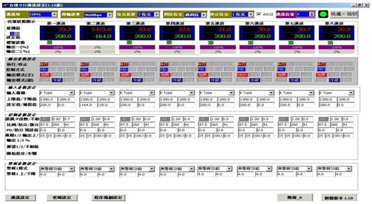 DTE對(duì)于參數(shù)的設(shè)置完全可以采用DTE專用的PC軟件來完成,全中文的DTE設(shè)置畫面簡(jiǎn)單明了。不動(dòng)區(qū)等參數(shù)需要結(jié)合現(xiàn)場(chǎng)實(shí)際工況來分析與設(shè)定。塑料擠出機(jī)一般可設(shè)置在:0.~2之間,而PID參數(shù)可以借助AT自動(dòng)完成。
