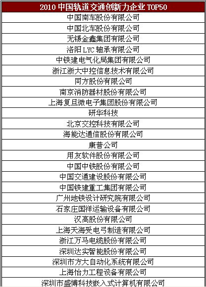 2011年中國軌道交通行業(yè)步入一個井噴式發(fā)展的新階段,中國已經(jīng)成為世界最大的軌道交通市場。眾多企業(yè)是如何與時俱進不斷創(chuàng)新?行業(yè)又該如何記錄那些不囿于桎梏勇于創(chuàng)新的先進?總結(jié)本年度在軌道交通行業(yè)勇于創(chuàng)新的企業(yè)和人物,由RT《軌道交通》雜志的主辦2011年度軌道交通創(chuàng)新力企業(yè)TOP50評價活動,將向業(yè)界隆重推出以智慧和膽識譜寫創(chuàng)新篇章的軌道交通先驅(qū)!