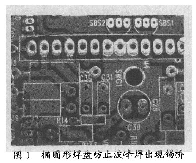 4)對于具有較高引腳數(shù)的器件如接線座或扁平電纜,應(yīng)使用橢圓形焊盤而不是圓形以防止波峰焊時出現(xiàn)錫橋(圖1)。
