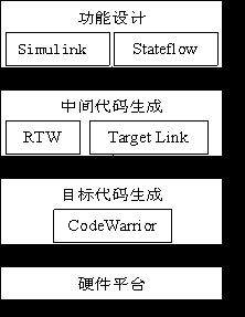 在進行向標準 C代碼的轉(zhuǎn)換的過程中,可以根據(jù)需要加入符合OSEK規(guī)范的嵌入式實時操作系統(tǒng)。在代碼生產(chǎn)階段使用的主要工具是CodeWarrior。通過使用CodeWarrior提供的編譯器、調(diào)試器等工具,完成從標準C代碼向目標硬件平臺上的產(chǎn)品代碼的轉(zhuǎn)換工作。下圖表示了汽車電子產(chǎn)品的代碼生成過程。