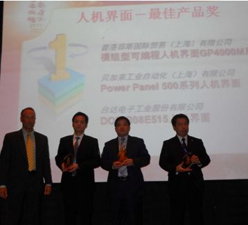 11月2日,在上海工博會期間召開的“創(chuàng)新 未來”2011(第七屆)CEC年度最佳產(chǎn)品獎評選頒獎典禮上,臺達人機“高手”——DOP-B08E515以其高分辨率、高容量、高畫質(zhì)、高速度、高抗干擾能力等多項優(yōu)秀技術(shù)性能指標在百余自動化產(chǎn)品的激烈角逐中脫穎而出,榮獲“2011年度最佳產(chǎn)品獎”!