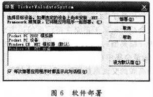 在Visual Studio 2003中進(jìn)行軟件設(shè)計(jì),并在模擬器中調(diào)試成功之后,就可以將軟件下載到實(shí)驗(yàn)平臺中運(yùn)行,在軟件進(jìn)行部署前安裝ActiveSync 4.1,并在軟件進(jìn)行部署時選中“Windows CE.NET、設(shè)備”見圖6。