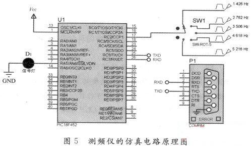 (1)仿真的目的是為了驗證所關(guān)心的CCP模塊的工作情況,所以圖中省略了PIC18F452的晶振電路和復(fù)位電路,其實它們都不會影響程序運(yùn)行的結(jié)果。