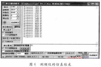 從圖6可以看出,PIC18F452已經(jīng)測出了設(shè)定的幾個輸入頻率的數(shù)值,仿真結(jié)果表明該方案可行。