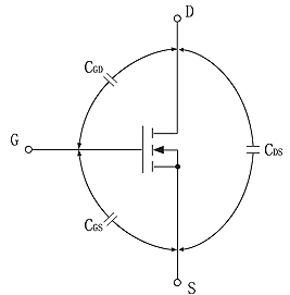 柵極驅(qū)動(dòng)損耗是在開關(guān)管導(dǎo)通及關(guān)斷瞬間,在一定的柵源電壓VGS下,對MOSFET的極間電容(如圖2所示)進(jìn)行充電(建立VGS電壓,使MOSFET導(dǎo)通)和放電(讓VGS=0,使MOSFET關(guān)斷)造成的損耗。此損耗與MOSFET的輸入電容Ciss或反饋電容Crss、柵極驅(qū)動(dòng)電壓VGS及開關(guān)頻率fsw成比例。要減小此損耗,就要選擇Ciss或Crss小、閾值電壓VGS(th)低的功率MOSFET。