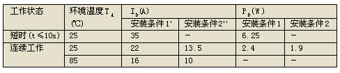 在DC/DC轉(zhuǎn)換器中,MOSFET工作在占空比變化的脈沖狀態(tài),但也不是工作于窄脈沖狀態(tài);工作溫度范圍是-40~85℃。表1、表2中無這種工作條件下的ID及PD值。ID可在下面的范圍內(nèi)選?。?TA=70~85℃時(shí)的ID)