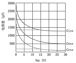 在計(jì)算開關(guān)管損耗時(shí)要用到輸入電容Ciss(Ciss=CGD+CGS)或反饋電容Crss(Crss=CGS)值。為減小開關(guān)損耗,要選擇Ciss或Crss小的MOSFET。Ciss一般為上千到數(shù)千pF,而Crss一般為幾十到幾百pF。“MOSFETT選擇指南”或“簡略表”中往往沒有Ciss或Crss參數(shù),但有總柵極電容Qg值。由于Qg小的MOSFET,其Ciss或Crss也小。所以可先找出Qg小的MOSFET型號,然后再在數(shù)據(jù)資料中找出Ciss或Crss值。有的數(shù)據(jù)資料的參數(shù)表中無Ciss或Crss參數(shù),但有Ciss和Crss與VDS的特性曲線,可取VDS=15V時(shí)的Ciss或Crss值作為計(jì)算值,如圖5所示。