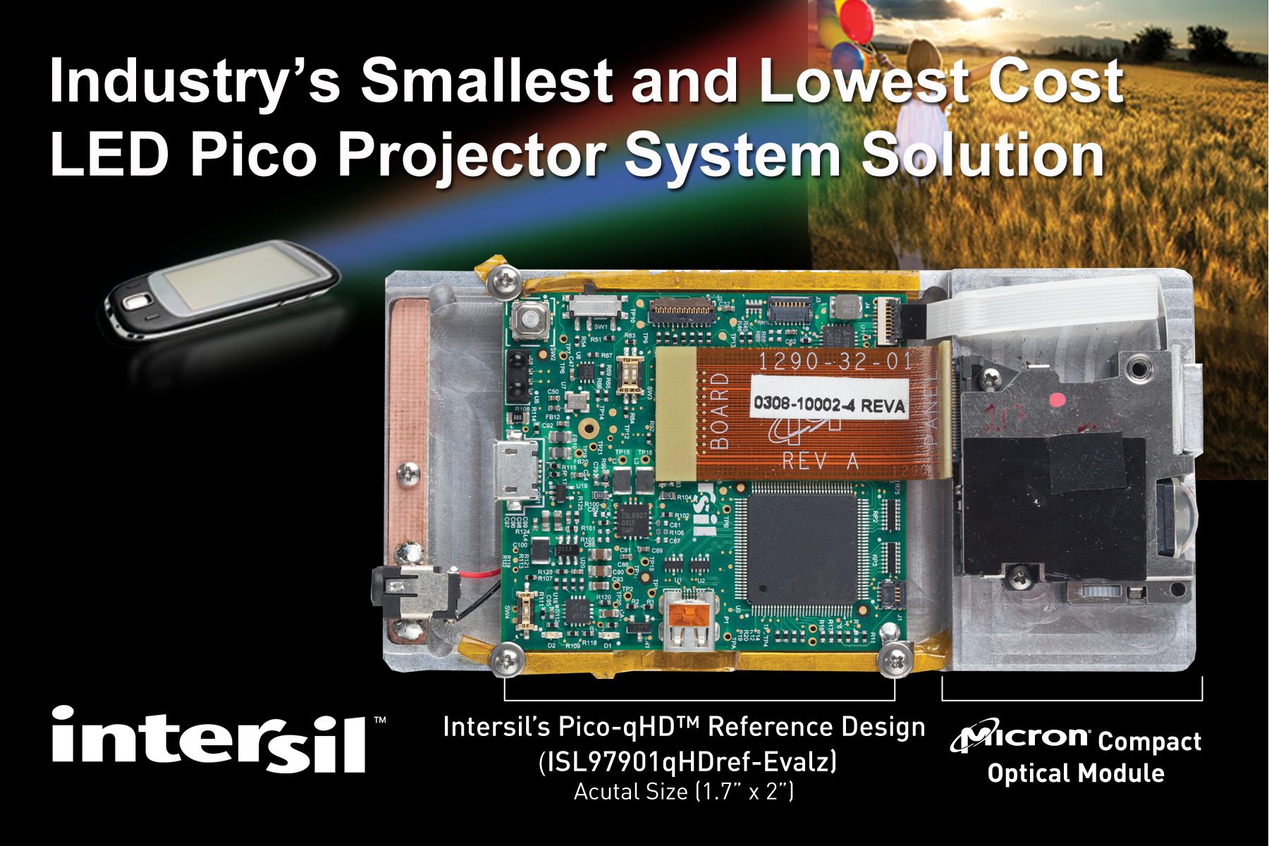 全球高性能模擬混合信號半導(dǎo)體設(shè)計和制造領(lǐng)導(dǎo)廠商Intersil公司日前天宣布,推出全球最低成本微型投影儀系統(tǒng)Pico-qHD™,以及已達到生產(chǎn)就緒階段的業(yè)內(nèi)最小的基于LED的LCoS微型投影儀解決方案。