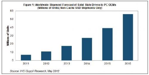 據(jù)IHS iSuppli公司的存儲(chǔ)市場(chǎng)簡(jiǎn)報(bào),隨著固態(tài)硬盤(pán)(SSD)的成本下降,以及超級(jí)本(Ultrabook)等產(chǎn)品的需求給其帶來(lái)活力,PC OEM廠商可能會(huì)增加使用SSD,從而進(jìn)一步擴(kuò)大其出貨量。