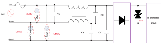 由于金屬陶瓷氣體放電管存在續(xù)流的問題而不能直接用在有源電路上進(jìn)行保護(hù),因而在有源產(chǎn)品上的防護(hù)必須要利用限壓型的保護(hù)器件(壓敏電阻或防雷型的HYPERFIX 等)配合使用。
