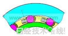 利用滾柱與斜面的關(guān)系這一點(diǎn)雖然與單路離合器相同,但與單路離合器的外輪斜面僅為單一方向相比,此次采用的是圓頂形狀,向任何方向移動(dòng)都可傳遞力,因此稱為雙向離合器。