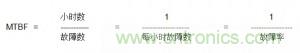想要將一個(gè)部件的材料清單(BOM)與另一個(gè)部件的材料清單進(jìn)行比較會(huì)怎么樣呢?能不能將每個(gè)元件的MTBF簡(jiǎn)單地加在一起,來確定總體可靠性呢?可惜的是:不可以。這是因?yàn)镸TBF代表的是出現(xiàn)故障的小時(shí)數(shù),按照加法計(jì)算是不起作用的。然而,故障率,一個(gè)代表每小時(shí)發(fā)生故障的次數(shù),是可以相加。慶幸的是將MTBF轉(zhuǎn)換成故障率僅是一個(gè)很簡(jiǎn)單分?jǐn)?shù)關(guān)系。以下是公式: