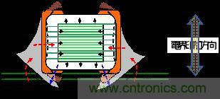 如果向高介電常數(shù)型的電容器(諸如`溫度特性為:B, R, X5R, X7R,Y5V的電容器)施加交流電壓,由于電致伸縮效應(yīng),會(huì)造成多層電容器芯片伸縮注)。根據(jù)電介質(zhì)一般的泊松比為0.3的特性,會(huì)在與積層方向垂直及平行的方向上產(chǎn)生伸縮(如圖2所示),其結(jié)果是基板表面發(fā)生振動(dòng)從而產(chǎn)生人耳可聞的聲音。通常情況下,因?yàn)檫@種振動(dòng)頻率遠(yuǎn)遠(yuǎn)高于人耳可聽(tīng)頻率范圍(20Hz~20kHz),所以即使向單體電容器施加人耳可聽(tīng)頻率范圍的信號(hào)電壓,也不會(huì)形成人耳可聞程度的聲音(嘯叫)。但是,如果將電容器封裝于基板,那么該振動(dòng)會(huì)傳導(dǎo)至基板,振動(dòng)就會(huì)放大(諧振)。其結(jié)果是人耳可以感知到類(lèi)似于“吱吱”的聲音。雖然芯片和基板的振幅僅為1pm~1nm左右,但其聲音卻大到人耳輕易識(shí)別的程度。
