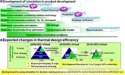 自2006年起,電裝一直在加強對模擬軟件的使用,以便減少花在物理原型方面的時間和成本。2009年,對模擬與物理原型的使用之比為20:80,到2010年已提高到50:50。2012年則達(dá)到了70:30。這種轉(zhuǎn)變使熱設(shè)計相關(guān)的時間和成本在不到六年的時間內(nèi)降低了50%。電裝計劃進一步加大對模擬的使用,到2015年將這一比例提高到90:10以上。