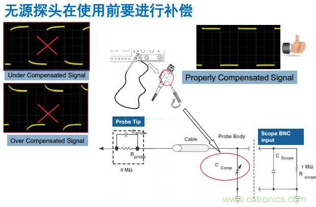 其實(shí)把示波器遞減掉,只是把示波器參考點(diǎn)放在你的機(jī)殼,示波器的電源有一個(gè)外電源,這個(gè)外電源是兩個(gè)電源串聯(lián),中間接到220伏的,地減之后,示波器本身不是這個(gè)概念的地。但是很多時(shí)候因?yàn)槭静ㄆ髡嬲槿氲讲遄系牡兀皇歉拍钌系牡?,很多時(shí)候再做一個(gè)接口會(huì)更好。任何的測(cè)量都是差度測(cè)量。因此我們要記住,所有問(wèn)題都是線纜的問(wèn)題。探頭的問(wèn)題解決幾個(gè)問(wèn)題,第一個(gè)是傳導(dǎo),第二個(gè)是輻射,這個(gè)是所有問(wèn)題的本質(zhì)。我們?cè)谑褂玫臅r(shí)候,要盡可能的減少地環(huán)的地,第二個(gè)是盡可能讓探頭遠(yuǎn)離輻射源和干擾源。還有一點(diǎn),我們知道任何一個(gè)探頭,我們希望輸出電源越小越好,但是找不到這樣的探頭,一個(gè)探頭可以達(dá)到10兆歐姆,但是交易質(zhì)量非常多,測(cè)量結(jié)果非常大,因?yàn)闀?huì)把電路拉寬。因?yàn)樘筋^本質(zhì)上是你的探頭的等效電路,并聯(lián)在電路上面,會(huì)吸收電,打垮電路。大家要注意這個(gè)影響。