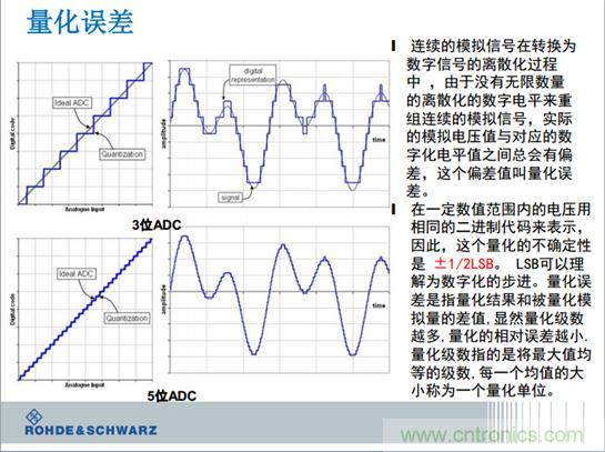 我們復(fù)習(xí)一下示波器的基本原理,把模擬信號(hào)變成影響點(diǎn)的各個(gè)。在數(shù)字空間里,永遠(yuǎn)都有0和1,每一個(gè)0和1代表的電壓的大小是多少呢?通常是8位的0和1組成一個(gè)電壓。電阻里的電源的電壓是400伏,還是低壓5毫伏,都可以進(jìn)行量化。每一個(gè)0和1代表的電壓是多少呢?這個(gè)是最小有利的比特位。特殊講,就是示波器的每一個(gè)路徑,示波器乘1111111,變成了11111110,最后一位從1變成0的跳變,代表了電壓的大小是多少呢?是取決于平時(shí)用示波級(jí)的量程。如果示波器1伏每格的時(shí)候,你0和1的跳變大約是30毫伏的變化。這個(gè)是示波器外邊的電壓的變化,30毫伏的電壓對(duì)示波器是沒(méi)有影響的,示波器感覺不到。這個(gè)就像平時(shí)用1厘米的刻度尺來(lái)測(cè)量頭發(fā)的時(shí)候發(fā)現(xiàn)無(wú)法測(cè)量,這個(gè)是基本的道理。