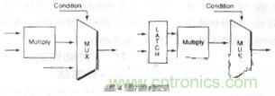 這 是一種在塊輸出不用時防止輸入信號使塊開關(guān)工作的技巧。例如考慮一個乘法器,它的輸出僅在某些特定條件下才使用。在此場合可增添一個鎖存器,這樣每當(dāng)輸出 不用時,乘法器的輸入將阻止不必要的開關(guān)動作帶入乘法器(圖4)。一個鎖存器只需一個組合單元,并不占用過多芯片面積。
