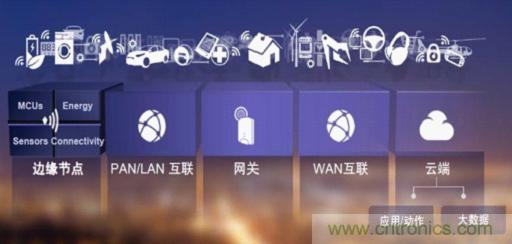 目前,整個(gè)物聯(lián)網(wǎng)的系統(tǒng)架構(gòu)可以分為5個(gè)部分,分別是邊緣節(jié)點(diǎn)、PAN/LAN互聯(lián)、網(wǎng)關(guān)、WAN互聯(lián)和云端,如圖1所示。飛思卡爾發(fā)現(xiàn),很多公司所做的產(chǎn)品無(wú)法在邊緣節(jié)點(diǎn)、網(wǎng)關(guān)以及云端這3個(gè)層次中共用。例如可穿戴設(shè)備,或者所設(shè)計(jì)的智能家居中的某些節(jié)點(diǎn),要對(duì)該節(jié)點(diǎn)進(jìn)行控制,可能選擇方案是“入門(mén)級(jí)低功耗MCU+連接性+傳感器”,這種設(shè)計(jì)方式是純粹的MCU設(shè)計(jì)方式。到了網(wǎng)關(guān)層次,復(fù)雜度會(huì)提高,就更偏向于使用高端的MCU,甚至是MPU。到云端就更復(fù)雜了,它的設(shè)計(jì)可能采用應(yīng)用處理器或者通信處理器。在物聯(lián)網(wǎng)的構(gòu)架中,大部分設(shè)備使用不同的技術(shù)、工具和開(kāi)發(fā)環(huán)境,甚至連編程語(yǔ)言也是不同的。怎樣來(lái)解決這個(gè)問(wèn)題呢?