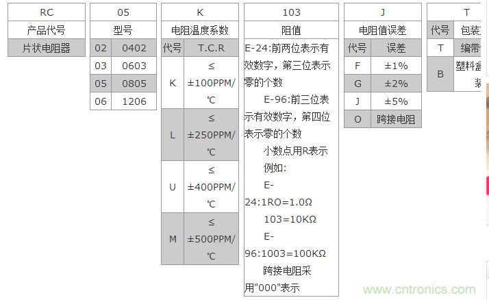 貼片電阻阻值誤差精度有±1%?±2%?±5%?±10%精度,常規(guī)用的最多的是±1%和±5%, ±5%精度的常規(guī)是用三位數(shù)來表示。 例512,前面兩位是有效數(shù)字,第三位數(shù)2表示有多少個(gè)零,基本單位是Ω,這樣就是5100歐,1000Ω=1KΩ,1000000Ω=1MΩ 。為了區(qū)分±5%,±1%的電阻,于是±1%的電阻常規(guī)多數(shù)用4位數(shù)來表示 , 這樣前三位是表示有效數(shù)字,第四位表示有多少個(gè)零4531也就是4530Ω,也就等于4.53KΩ。B5X,D1B,47R,24R,12D,30C不是 常規(guī)的標(biāo)注?必須找生產(chǎn)廠家的規(guī)格書?貼片電阻有功率的大小如0805?1206等1/4W 1/2W電阻當(dāng)然還有其他功率如1/8W的,大致上也就這三種最常見了。