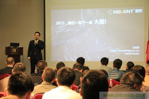 會(huì)議伊始,鼎陽(yáng)科技董事長(zhǎng)兼總裁秦軻先生進(jìn)行了精彩致辭,總結(jié)了鼎陽(yáng)科技在2014年取得的巨大成就,展望了鼎陽(yáng)科技在2015年的宏偉前景,為鼎陽(yáng)科技在新一年的持續(xù)高速增長(zhǎng)擺下了棋陣。2014年鼎陽(yáng)科技的銷售額增長(zhǎng)了41%;MSO2000、SDS3000、SDM3000在取得了眾多工藝上的突破之后順利量產(chǎn)。去年,鼎陽(yáng)科技美國(guó)分公司在克里夫蘭正式成立,為北美市場(chǎng)的下一輪增長(zhǎng)做了堅(jiān)實(shí)的鋪墊。2014年,鼎陽(yáng)科技參加了海內(nèi)外的多個(gè)大型展會(huì),標(biāo)志著鼎陽(yáng)科技正式立足于測(cè)試測(cè)量?jī)x器領(lǐng)域主流品牌的行列。與此同時(shí),鼎陽(yáng)科技與廣州工業(yè)大學(xué)深度合作,建立了聯(lián)合實(shí)驗(yàn)室,第一屆鼎陽(yáng)杯也圓滿落幕,增強(qiáng)了鼎陽(yáng)科技在高校用戶群體中的知名度,進(jìn)一步鞏固了鼎陽(yáng)科技在教育領(lǐng)域的影響力。