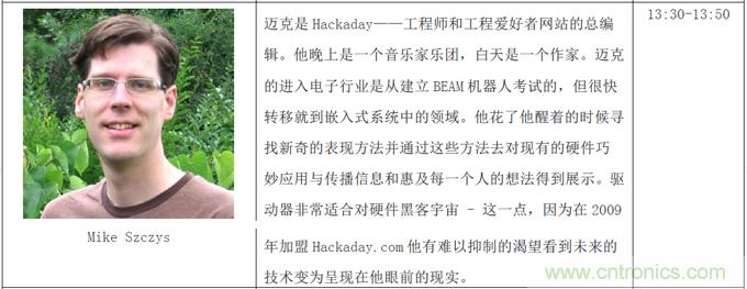 本次創(chuàng)客論壇三天共三個(gè)主題:啟蒙創(chuàng)新、創(chuàng)客本質(zhì)和協(xié)同合作,將邀請到包括暢銷書《失控》作者Kevin Kelly、克萊舍基、Arduino開源電子原型開發(fā)平臺(tái)聯(lián)合創(chuàng)始人Massimo Banzi、第一個(gè)生物創(chuàng)客空間BioCurious聯(lián)合創(chuàng)始人Tito Jankonski、F.laobo的制作人和ArduinoFio的設(shè)計(jì)者Shigeru Kobayashi、Intel最小的實(shí)習(xí)生Joey Hudy和為麻省理工研究生授課的14歲電子神童QuinEtnyre等等共50余位來自全世界各地的創(chuàng)新領(lǐng)域領(lǐng)軍人物。