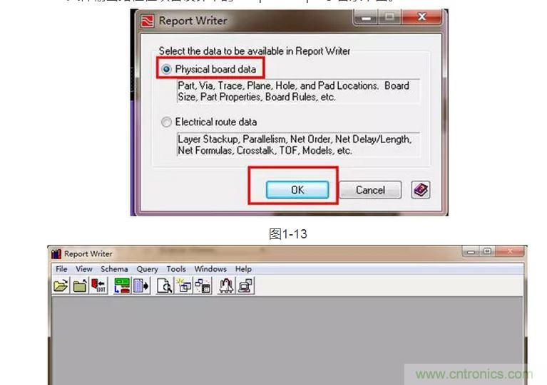 選擇菜單命令Output->Report Writer,在彈出窗口如圖1-13,選擇Physical board data,然后點擊OK會彈出如圖1-14窗口,在菜單欄中選擇Tools->Laucher,則會彈出如圖1-15窗口,選擇IPC-D-365,然后點擊Run,在彈出如圖1-16窗口點擊OK按鈕,IPC365文件已生成,然后關(guān)閉窗口。
