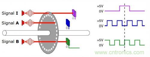 圖2a 光學編碼器標準A和B正交信號及索引信號