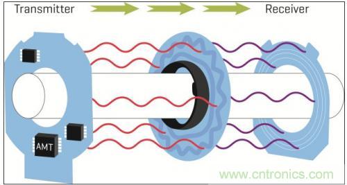 除了利用磁場而非光束之外,磁編碼器的結構與光學編碼器類似。磁編碼器用磁盤代替帶槽光輪,磁盤在一組磁阻傳感器上轉動,在這些傳感器中產(chǎn)生響應,傳遞給信號-調節(jié)前端電路,用于確定軸的位置。雖然這種編碼器的耐用性較高,但是容易受到電機產(chǎn)生的電磁干擾影響,準確性不如光學編碼器。