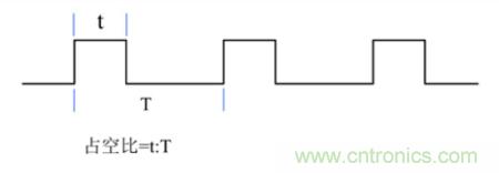 脈沖寬度調(diào)制(PWM)是一種對(duì)模擬信號(hào)進(jìn)行數(shù)字編碼的方法。通過高分辨率計(jì)數(shù)器的使用,方波的占空比被調(diào)制用來對(duì)一個(gè)具體模擬信號(hào)進(jìn)行編碼。PWM信號(hào)仍然是數(shù)字的,因?yàn)樵诮o定的任何時(shí)刻,滿幅值的直流供電要么完全有(ON),要么完全無(OFF)。電壓或電流是以一種通(ON)或斷(OFF)的重復(fù)脈沖序列被加到模擬負(fù)載上去。通的時(shí)候即是直流供電被加到負(fù)載上的時(shí)候,斷的時(shí)候即是供電被斷開的時(shí)候。只要帶寬足夠,任何模擬值都可以使用PWM進(jìn)行編碼。而占空比就是高電平持續(xù)時(shí)間與整個(gè)周期時(shí)間的比值,占空比越大,高電平持續(xù)的時(shí)間越長,模擬電路開通的時(shí)間就越長,如圖1所示。