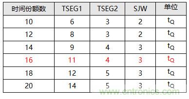 表2.LS_CAN可選時間份額與同步跳轉帶寬